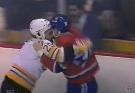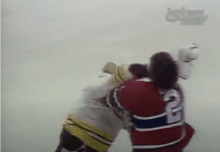 I think it’s safe to say that times have changed when you think that one of the best scraps of all-time happened during the STANLEY CUP FINALS!!! Hell, nowadays guys are worried about getting a hooking call! But there were no rules in the 70s. Absolutely destroying Pierre Bouchard with a flurry of right hands, this is by far one of Jonathan’s most legendary scraps. It has to be denoted that Bouchard’s collapse to-the-ice was devastating, but it ain’t good ol’ hockey without a little blood. There is clearly a running theme between the Canadiens and the Bruins – and rightfully so. These teams didn’t like each other and their enforcers made it clear…plus, there’s nothing better for fight fans. The Canadiens may have had the last laugh with their 6-game series win, but Jonathan will always have the night-night TKO on Bouchard.